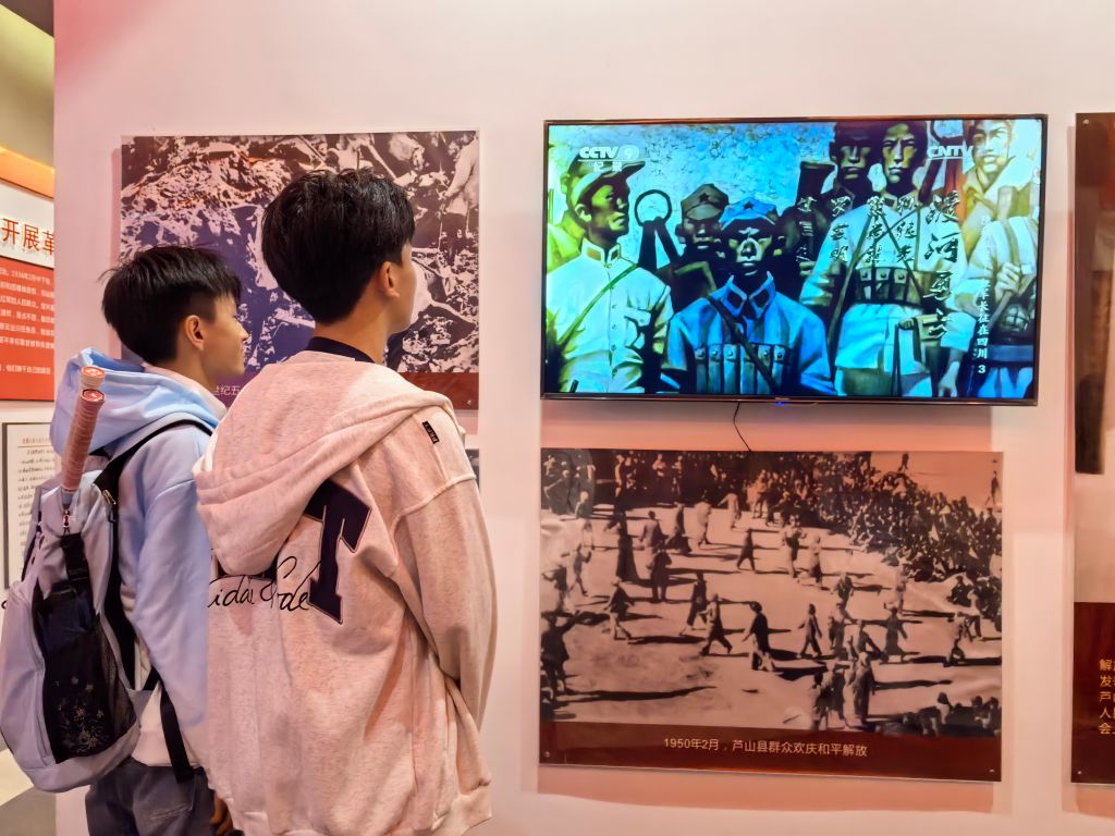 此次活动邀请到雅安市党群活动中心志愿者讲解员张老师为同学们提供参观讲解服务,跟随着张老师的脚步,同学们井然有序地进行参观,仔细了解发生在雅安的红色革命历史,在“红色雅安”展厅,当看到“红军强渡大渡河”的那艘复刻的翘首木船、“胡长保舍身保卫毛主席”纪念铜像,听到“红军翻越夹金山”等故事时,在场的同学无不为之动容,深刻领悟到红军革命理想高于天,为了胜利不怕任何艰难险阻、不惜付出一切牺牲的崇高精神。