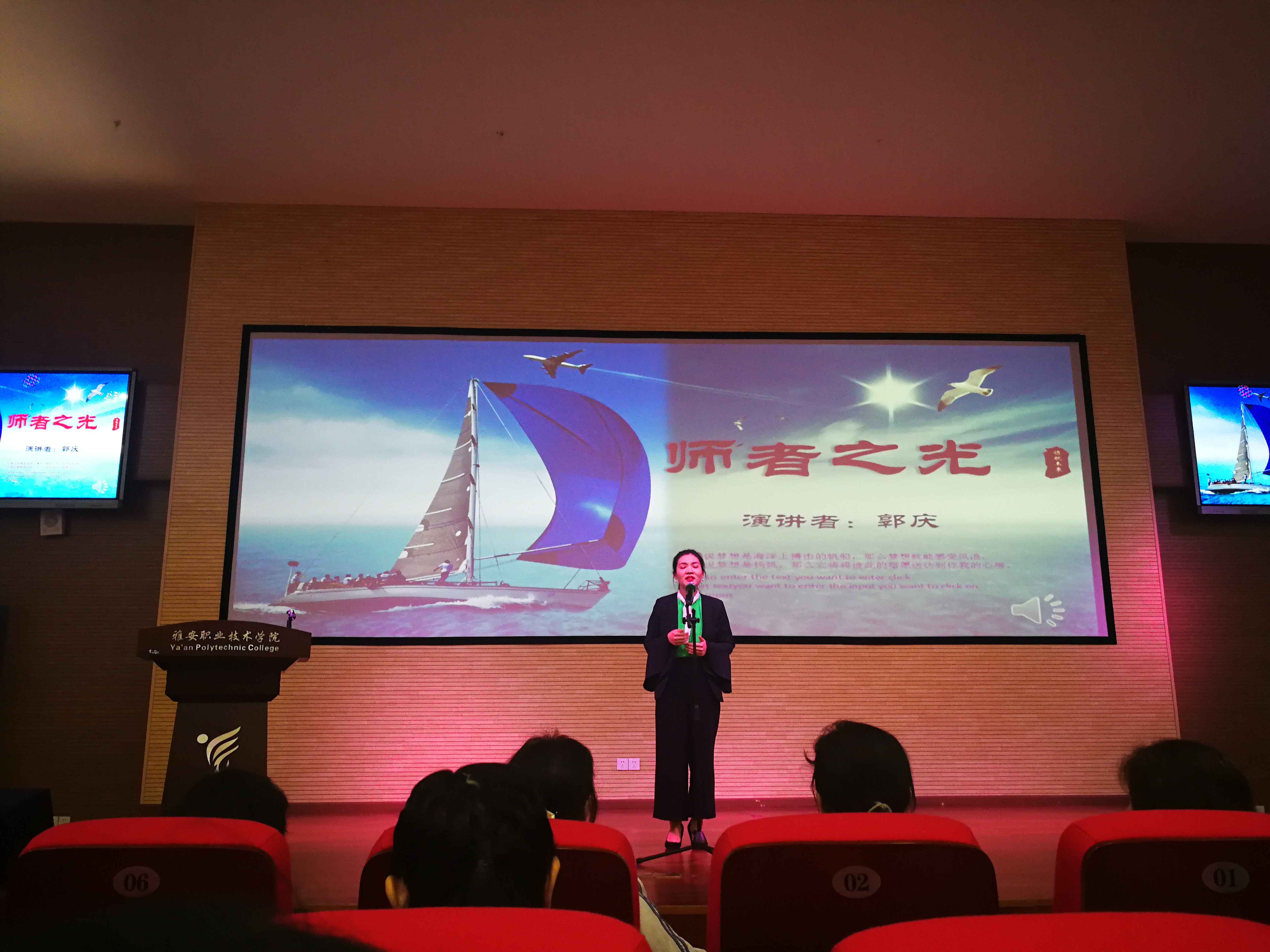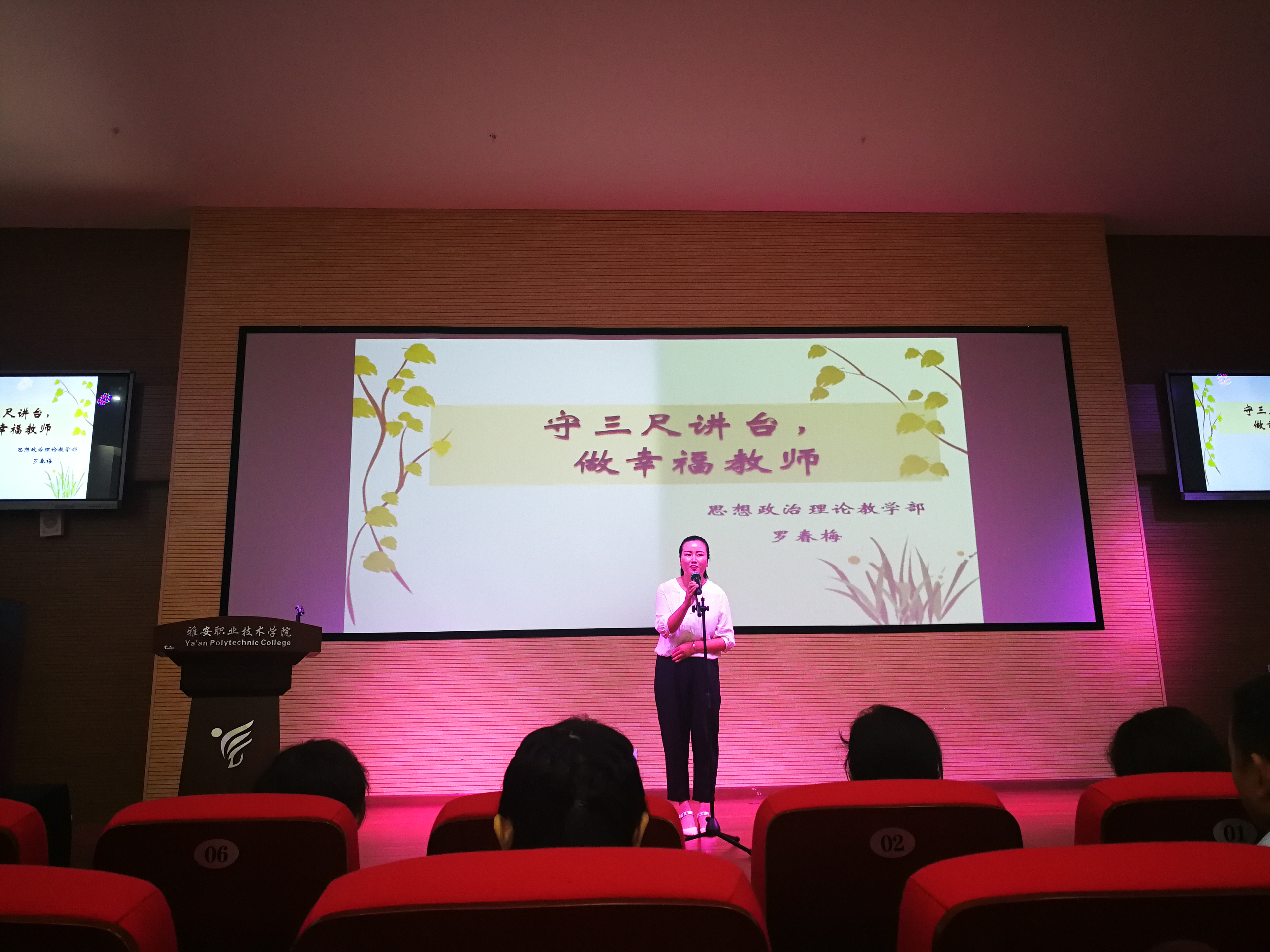 比赛中,各位教师结合身边感人事迹,以饱满的热情从不同的角度诠释了对师德师风的理解,表达了对教育事业的忠诚和热爱。郭庆老师以“师者之光”为题,抒发了思政教师甘为人梯、乐于奉献的情怀;罗春梅老师以“守三尺讲台、做幸福教师”为题,赞美了思政教师铸魂育人、爱岗敬业的高尚情操。经过两个多小时的角逐,罗春梅老师获得了本次演讲比赛的一等奖,郭庆老师获得了三等奖。