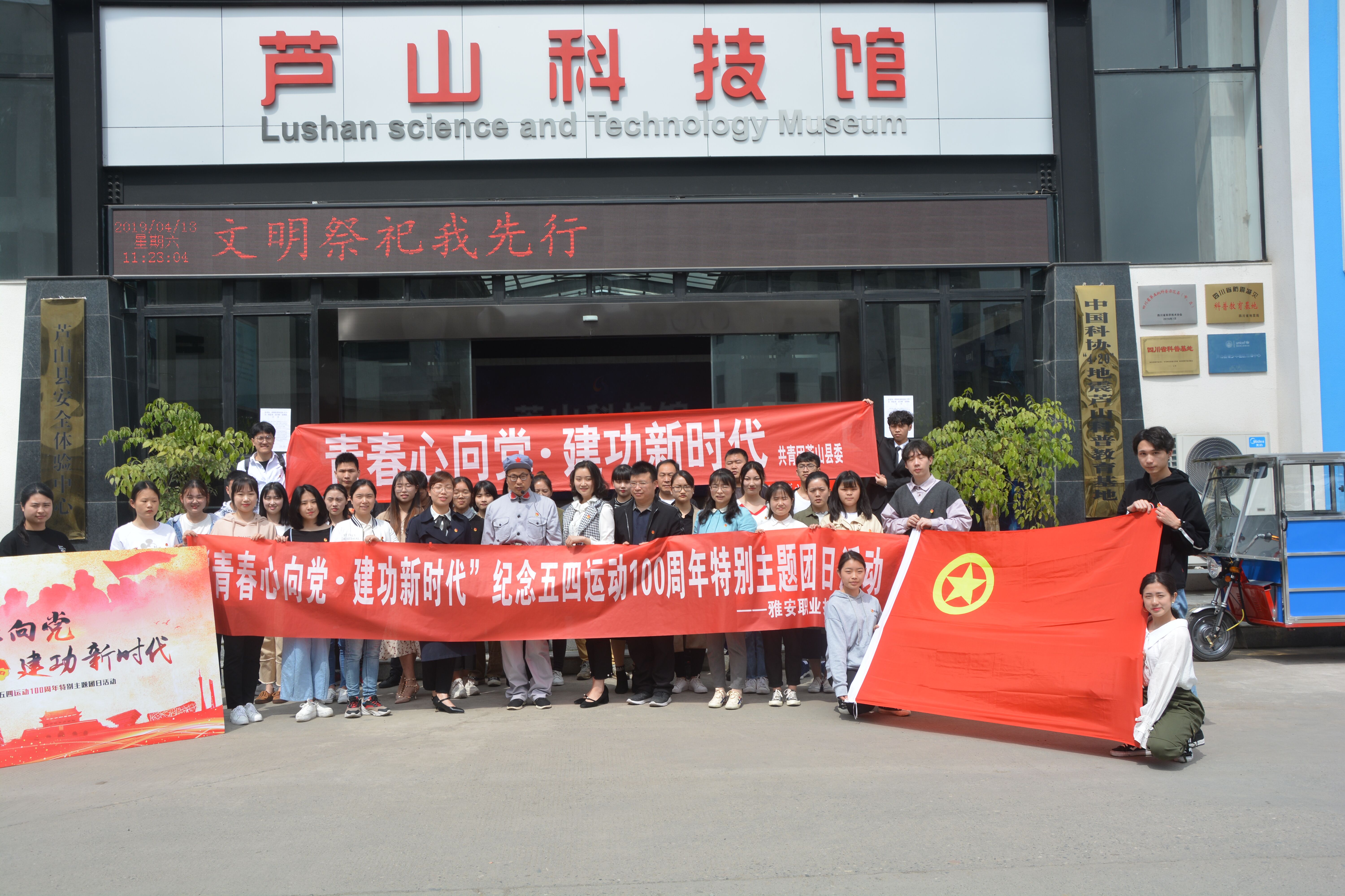4月13日,公司团委与芦山县团委共同开展“青春心向党•建功新时代”纪念五四运动一百周年特别主题团日活动。院团委、芦山县团委等师生一行30余人,思政部副主任吕登蓉和何衡老师参加了此次活动。