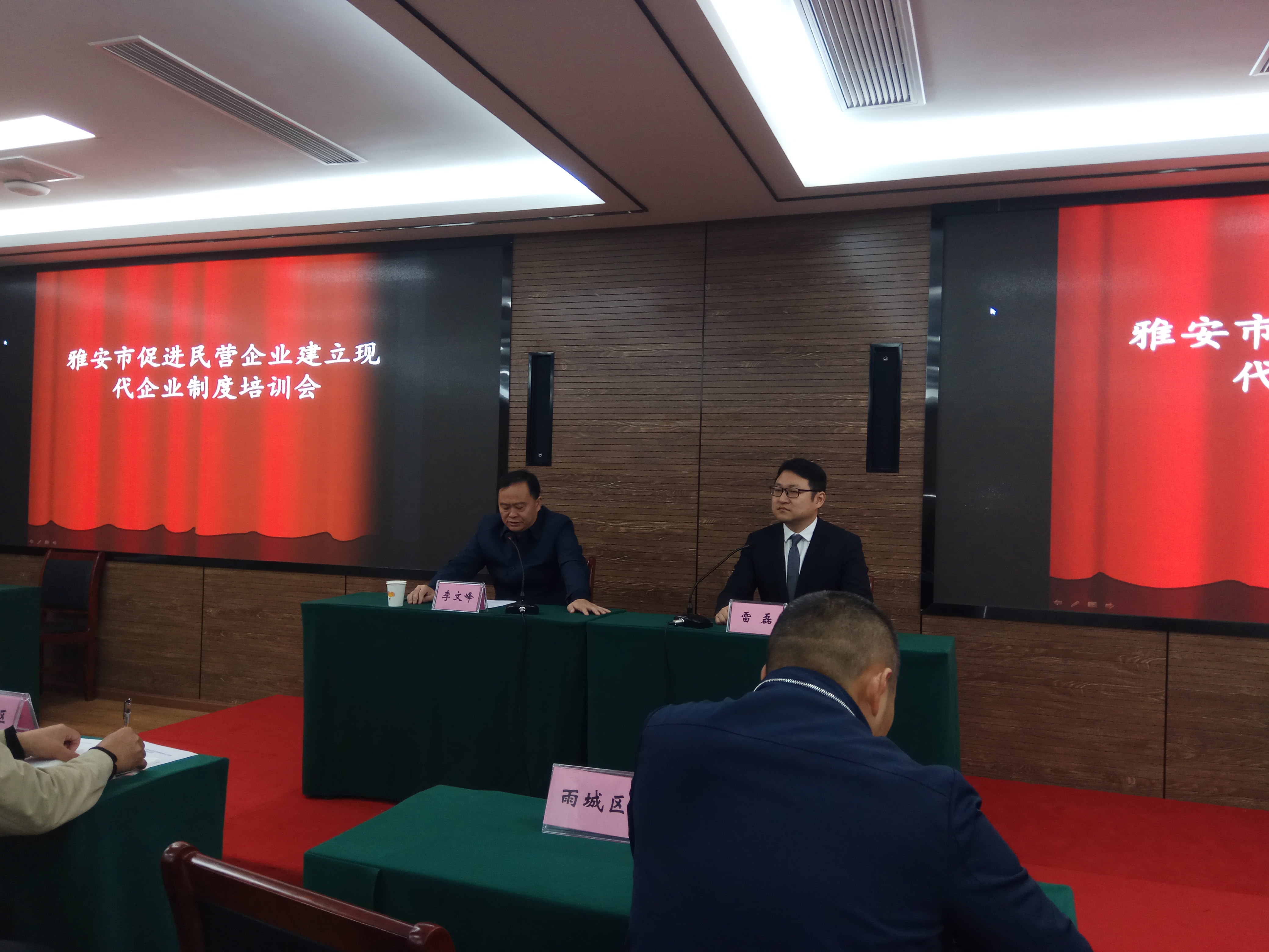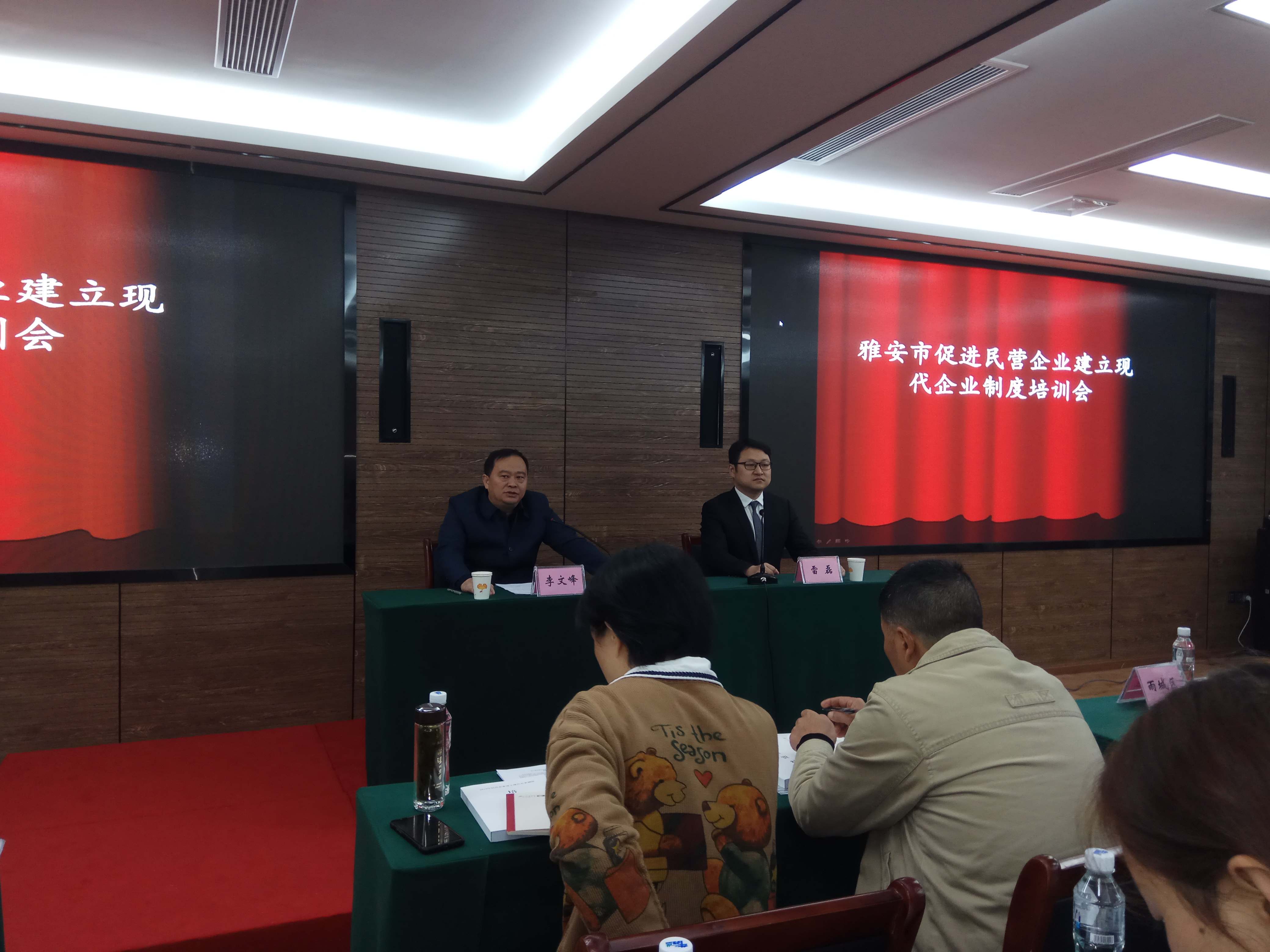 2019年10月24日上午,公司思政部教师雷磊应雅安市民营经济发展局邀请,在雨城区新雅州酒店会议室进行了主题为“雅安市促进民营企业建立现代企业制度”的培训讲座。