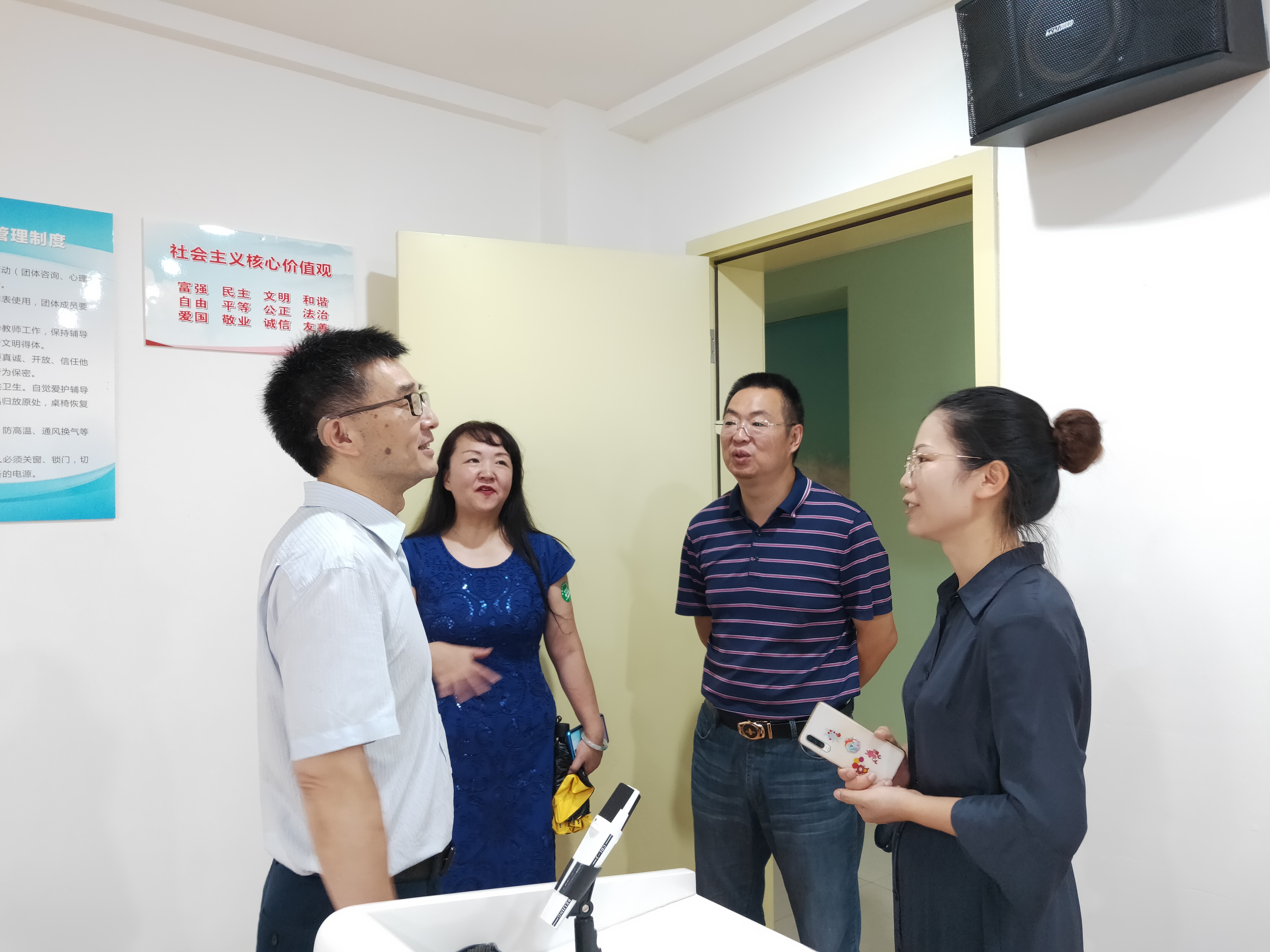 在公司党委副书记付洪涛的陪同下,游承陆一行来到位于青年路校区的雅安市未成年人心理成长指导中心,实地查看了中心的整体环境、各个功能室以及最近一年多来开展的各项活动,游处长一边看一边和随行人员交流,对个体咨询室和沙盘室的使用情况作了详细的了解,对音乐放松室和宣泄室的作用作了特别的询问,并对中心心理健康教育活动开展情况特别感兴趣。最后,游处长充分地肯定了公司在全市未成年人心理健康教育工作中的作用,强调要发挥好地方高校在雅安市未成年人心理成长指导工作中的引领作用,并对中心以后的工作提出了明确要求。