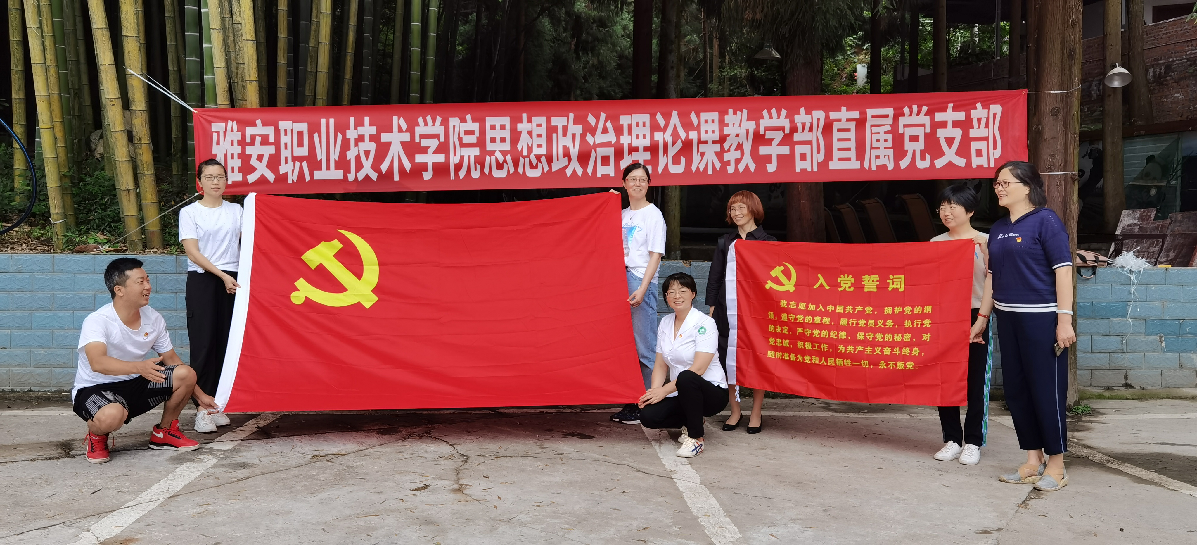 参观茶史馆后,直属党支部开展了庆祝建党99周年的“主题党日”活动。活动首先由李霓书记领誓重温入党誓词。再由支部组织委员何衡同志以《红色文化在雅安》为题开展了专题党课讲座。讲座主要从红军在雅安长征的过程、红四方面军南下、雅安红色文化的历史地位三个方面进行讲解,让支部党员对雅安的红色文化进行了系统的了解,并得到了深刻的启示。讲座结束后由支部副书记和纪检委员领学《中国共产党支部工作条例(试行)》《中国共产党纪律处分条例》《2020年政府工作报告》等内容。学习完成后,根据学习内容由任红静同志主持开展了有关学习内容的知识抢答。随后李霓总结安排近期支部、部门重点工作。最后何莉同志带领全体党员教师齐跳健身操。