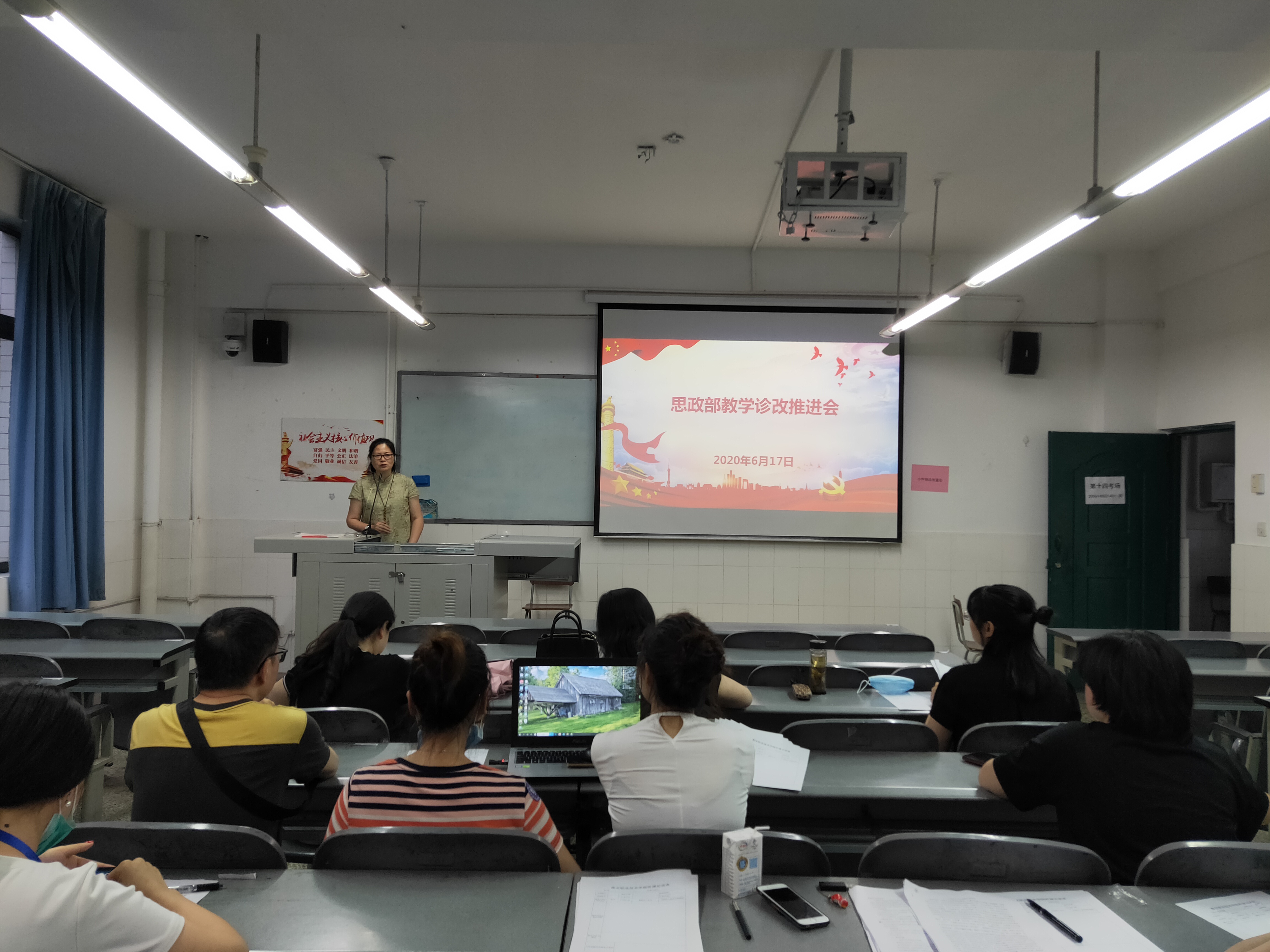 6月17日晚7点思政部组织参加公司第二届教学能力大赛《思想道德修养与法律基础》、《毛泽东思想和中国特色社会主义理论体系概论》、《老员工心理健康》的三个参赛团队开展了赛前演练暨教学诊改工作会议。