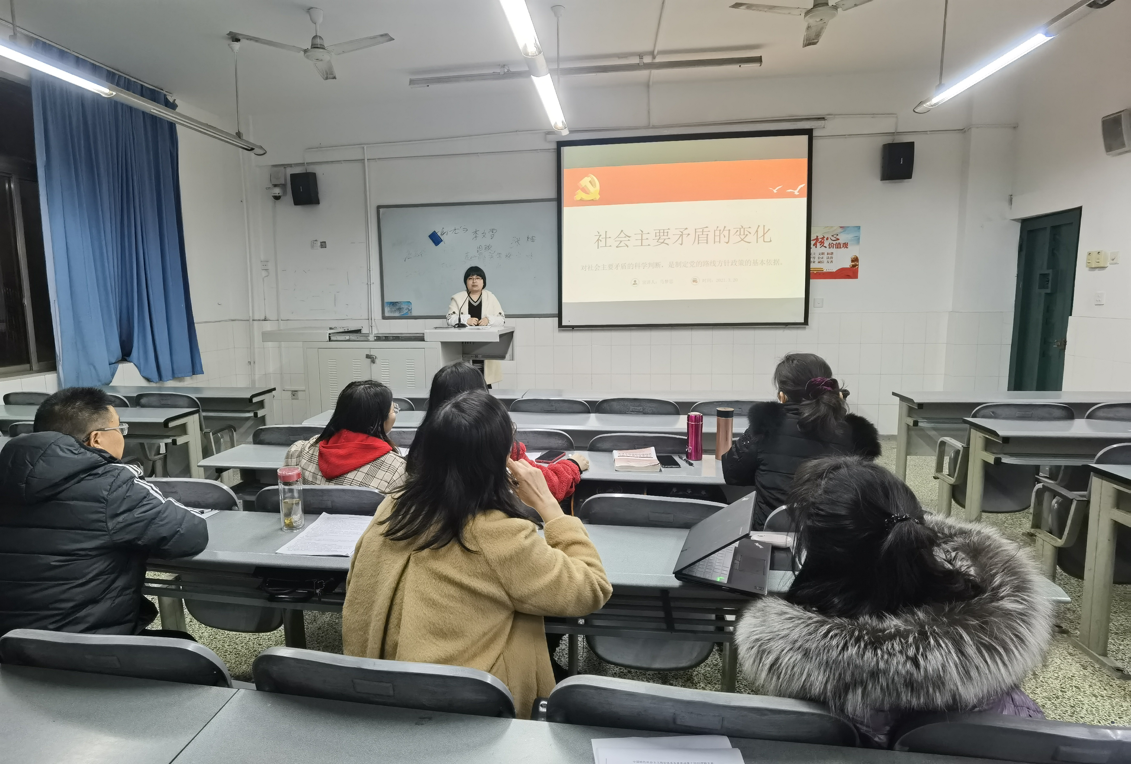 为提升教师教材转化能力,把握新形势下思政课教学的核心要素,顺利推进《毛泽东思想和中国特色社会主义理论体系概论》(以下简称《概论》)省级示范课程建设,2021年3月10日晚,思政部概论课教研室开展集体备课研讨会,思政部负责人和教研室全体教师参加了本次活动。