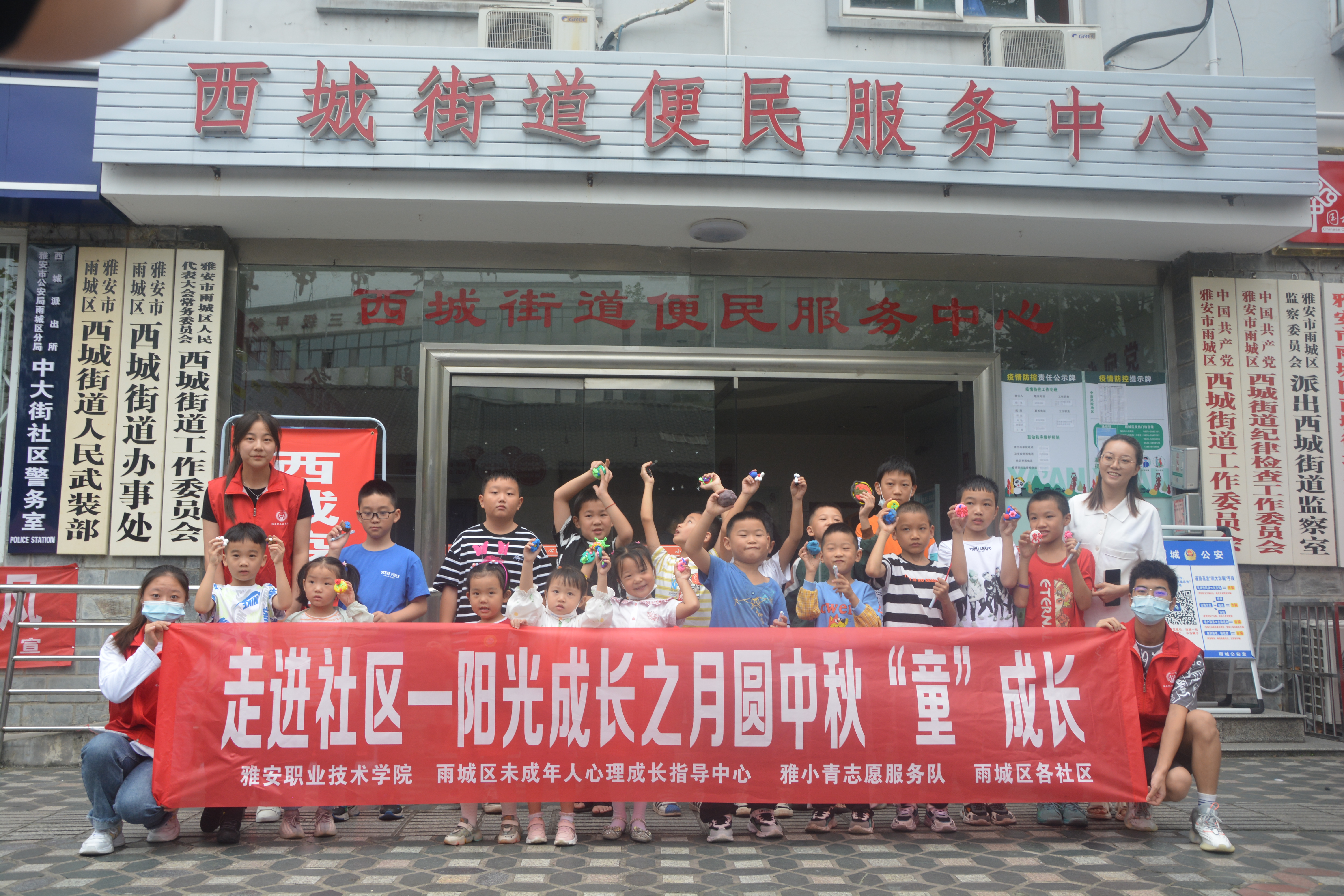 9月11日至12日,阳光成长之“月圆中秋“童”快乐”心理健康活动在各社区进行。本次活动由雨城区精神文明建设办公室牵头,隶属马院的雅安市市未成年人心理成长指导中心、雨城区未成年人心理成长指导中心,以及太阳成tyc7111cc雅小青志愿服务队、雨城区各社区共同开展。活动覆盖9个社区心理辅导点位,分别是中大街社区、飞机坝社区、南二路社区、挺进路社区、沙溪社区、斗胆社区、孝廉社区、汉碑社区、大兴龙溪社区,约100名儿童参与了心理体验活动。