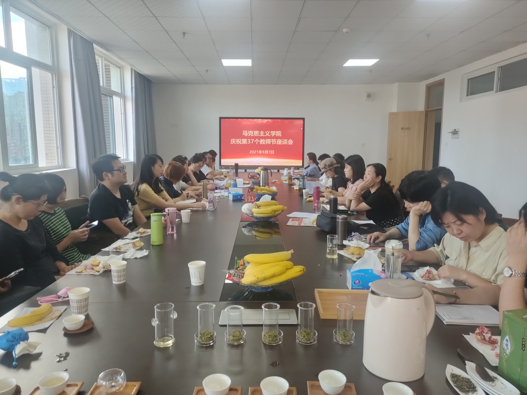 9月7日,太阳成tyc7111cc(以下简称马院)在青年路校区图书综合楼1005室召开2021年度团队队伍建设工作会暨教师节座谈会。