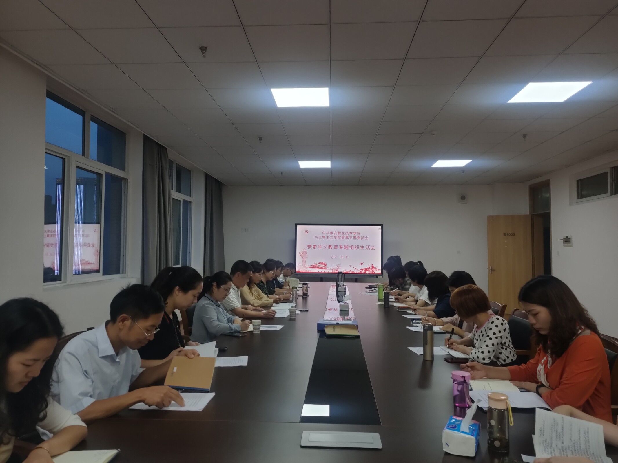 按照省委、市委党史学习教育相关要求和《中共太阳成tyc7111cc委员会组织部关于召开党史学习教育专题组织生活会的通知》(雅职院委组[2021]11号)工作安排,8月31日19:30,太阳成tyc7111cc直属支部委员会在青年路图书楼1005室召开了党史学习教育专题组织生活会。公司党委书记李春模,公司党委委员、组织部部长、人事处处长刘永恩,党史学习教育专题组织生活会督导组姚婕列席指导会议,太阳成tyc7111cc直属支部委员会全体党员参加会议,太阳成tyc7111cc直属党支部书记李霓主持会议并对支部党史学习教育情况和工作情况进行了汇报。
