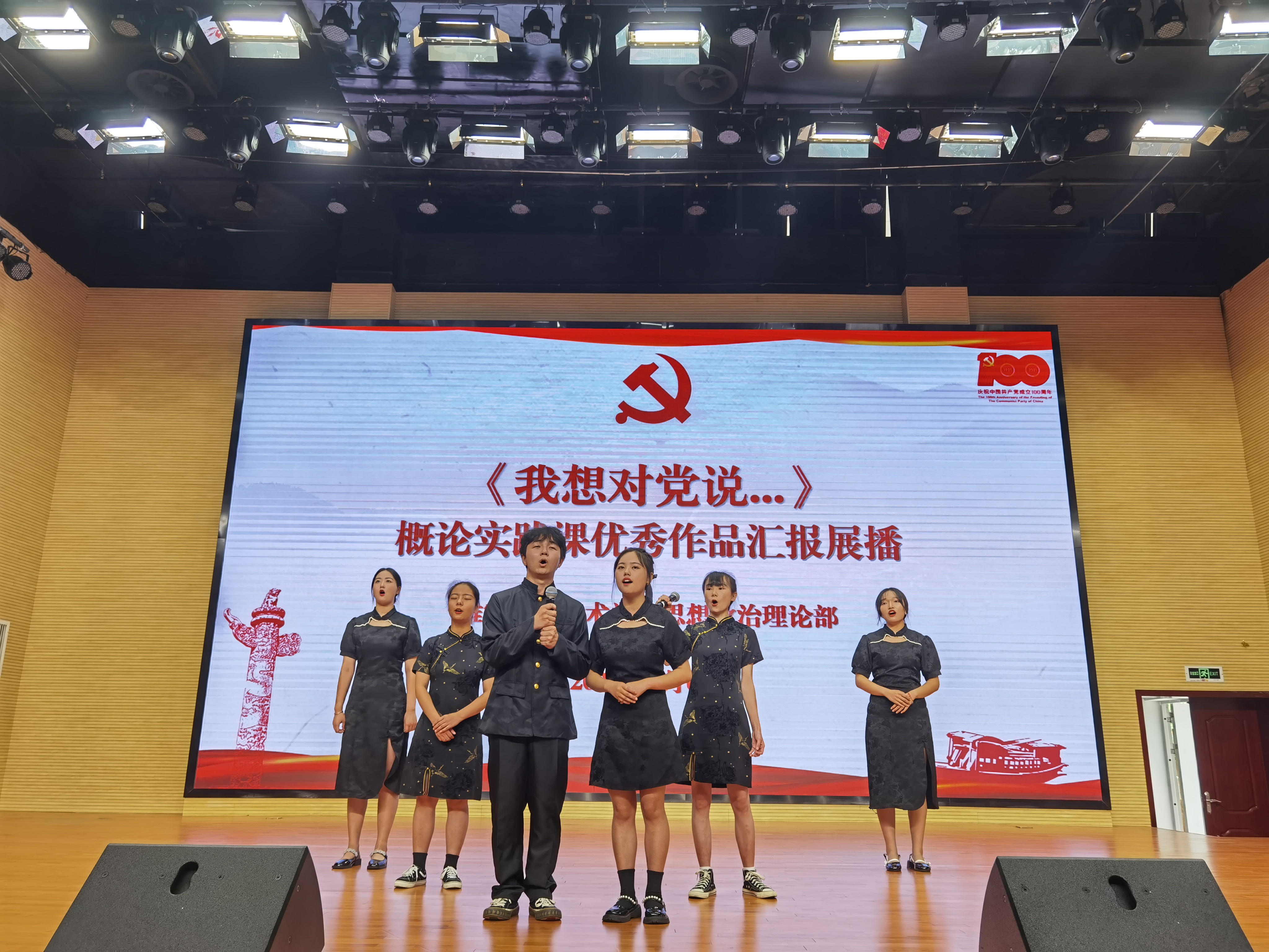 活动展示场面精彩热烈,掌声不断。红歌作品题材广泛、形式多样,伴奏旋律引人入胜;视频作品匠心独运、精巧细致,思维视野令人侧目;朗诵作品别具一格、慷概激昂,真情实感充分流露;小报作品图文并茂、字迹工整,内容丰富寓意深刻。现场同学时而凝神屏气、时而掌声如雷。评委严肃认真、客观公正。展示活动通过腾讯会议进行了同步直播,覆盖了全年级的同学,线上线下气氛热烈。思政部主任李霓和副主任王坤容分别对不同校区的活动展示进行了点评,充分肯定同学们积极参与,认真对待,发挥特长,精心呈现,较好地完成了实践教学的任务。希望同学们把对党和祖国的拳拳之情,转化为实际的行动,用青春和热血去抒写奋斗新征程的华章。两个校区活动安排井然有序,在思政部教师的共同努力下,在同学们的积极参与下,“概论”课实践成果展示活动圆满结束。