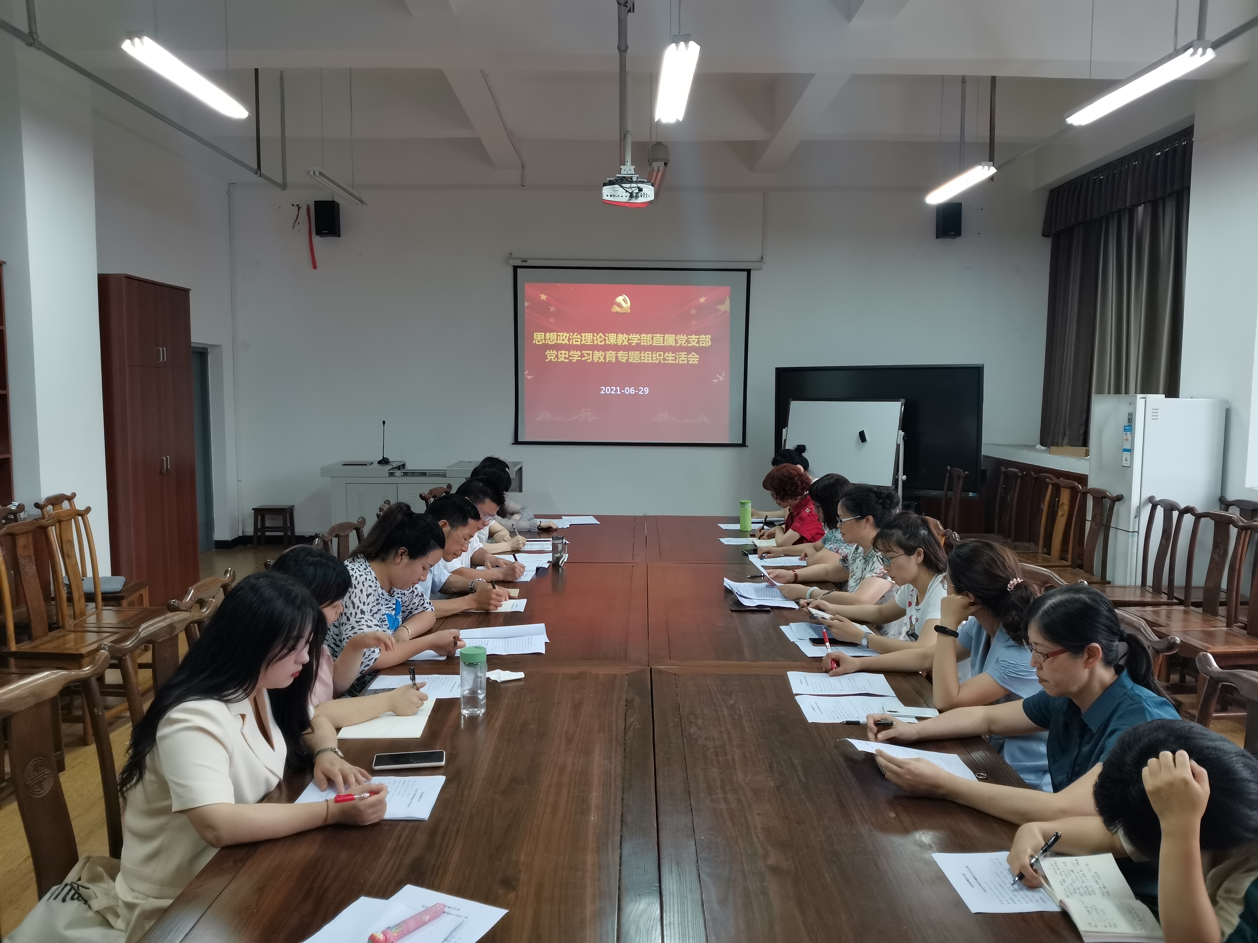 首先,全体党员集体观看了微视频《中国共产党100周年述职报告》,微视频播放时间虽然不长,但完整地展现了我党历史进程,党员同志们的收获很大。第二项议程由支部组织委员何衡同志做以《社会主义革命和建设》为题的微党课讲座,通过30分钟的微党课学习,党员同志们增强了对社会主义建设时期曲折历史的了解认识,对确立社会主义制度的深远意义有着更为广泛地认同。第三项议程是党史学习教育组织生活会,李霓主任带头剖析了自己在学习党史过程中的收获和感悟,要求大家对照《中国共产党章程》自我检查,查摆突出问题。副主任王坤容结合自身工作实际进行了剖析,同时指出了自己不足之处。与会的各位党员紧密结合本职岗位分别总结了学习党史的经验教训,深入开展了批评与自我批评,认真检视了自身学习效果和存在的差距以及其他党员同志提出的意见建议。