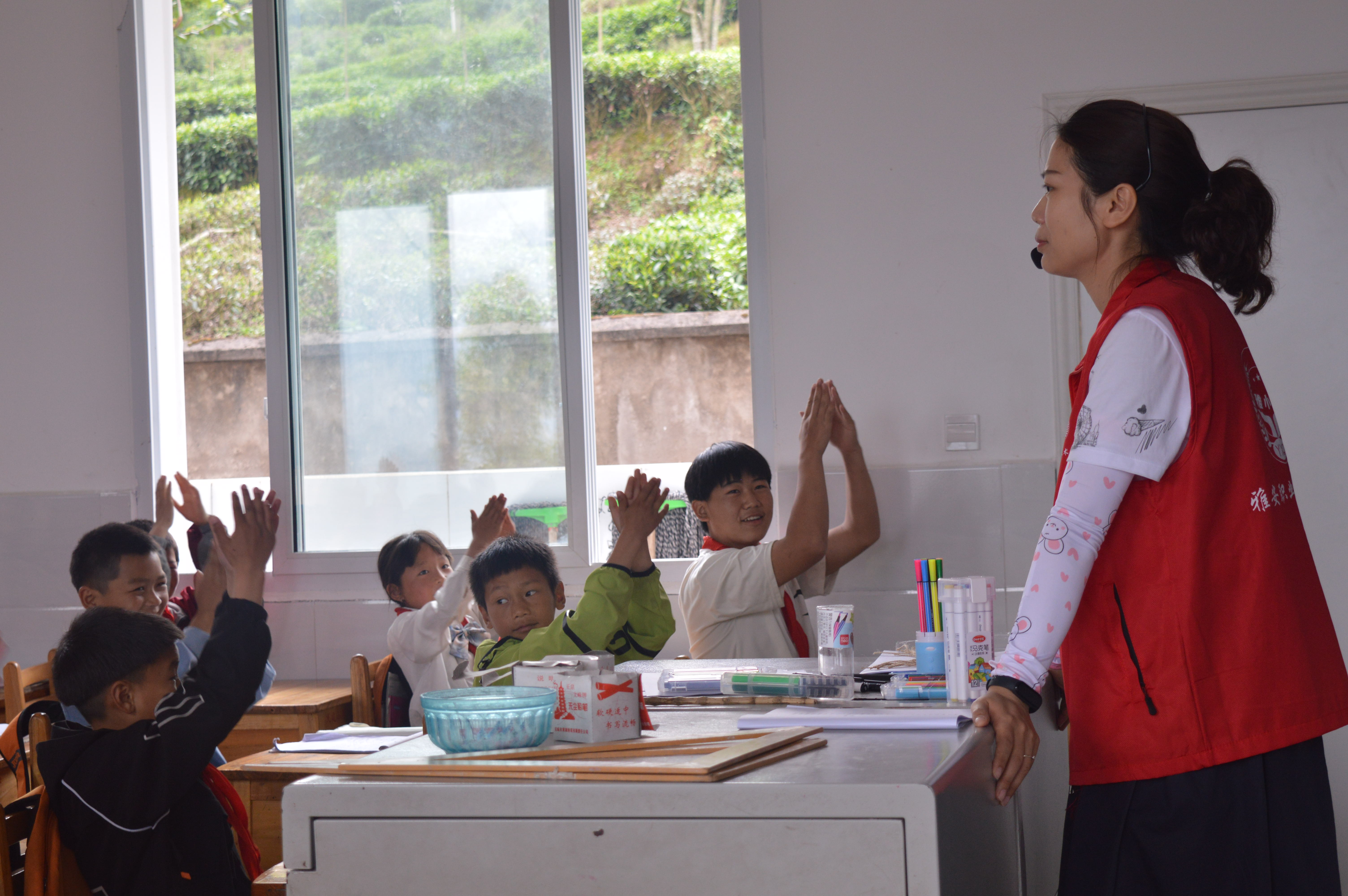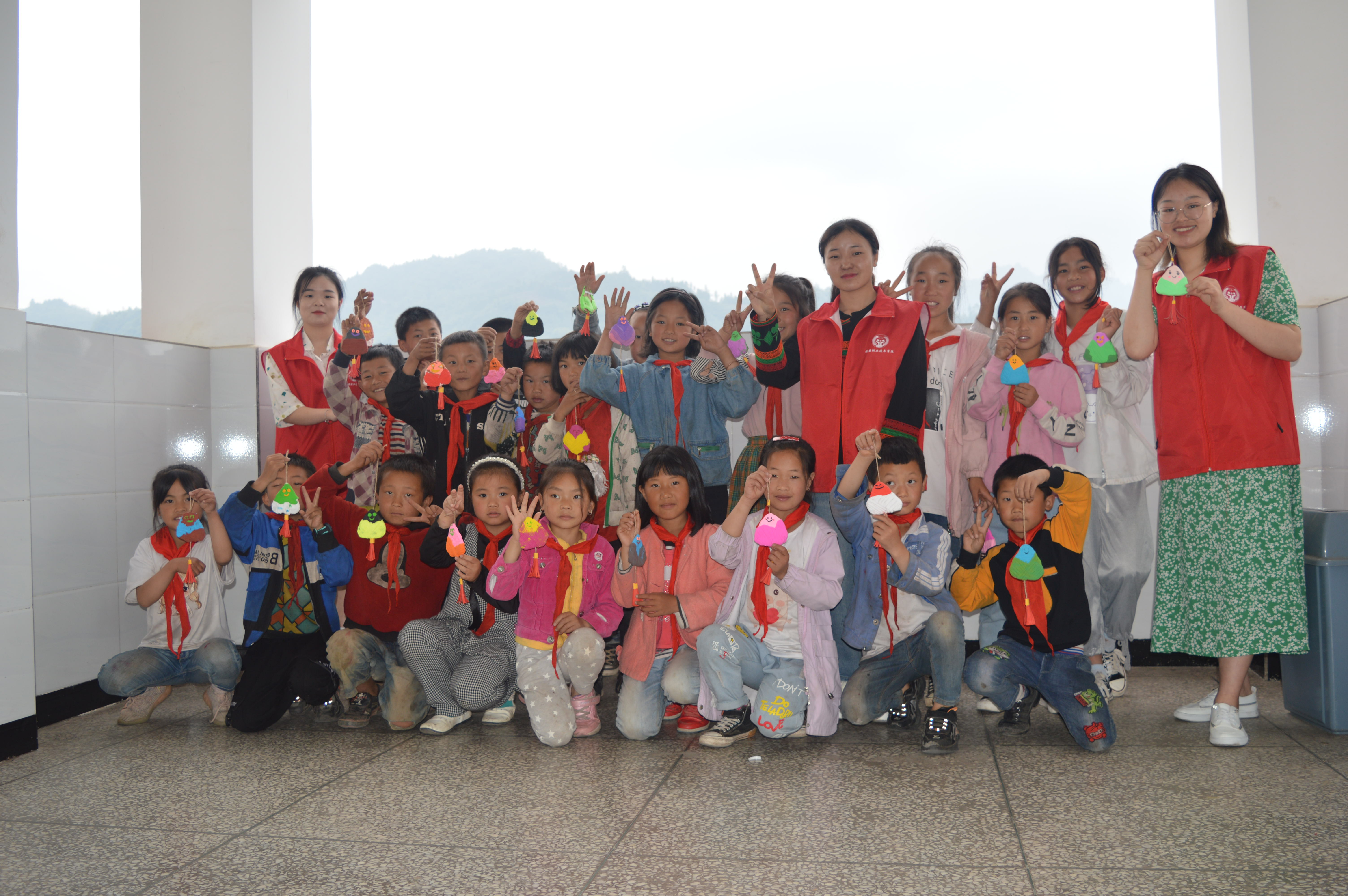 老师们带领志愿者服务队与来自荥经县民建乡中心小学共260名彝族员工一起开展了丰富多彩的活动。大家在活动中运用绘画、手工、唱歌等方式和彝族孩子们进行互动,不仅让孩子们感受幸福的童年,还让孩子们知道如何适当宣泄情绪,教会孩子们怎样增强自信,怎样通过心理暗示激发潜力。