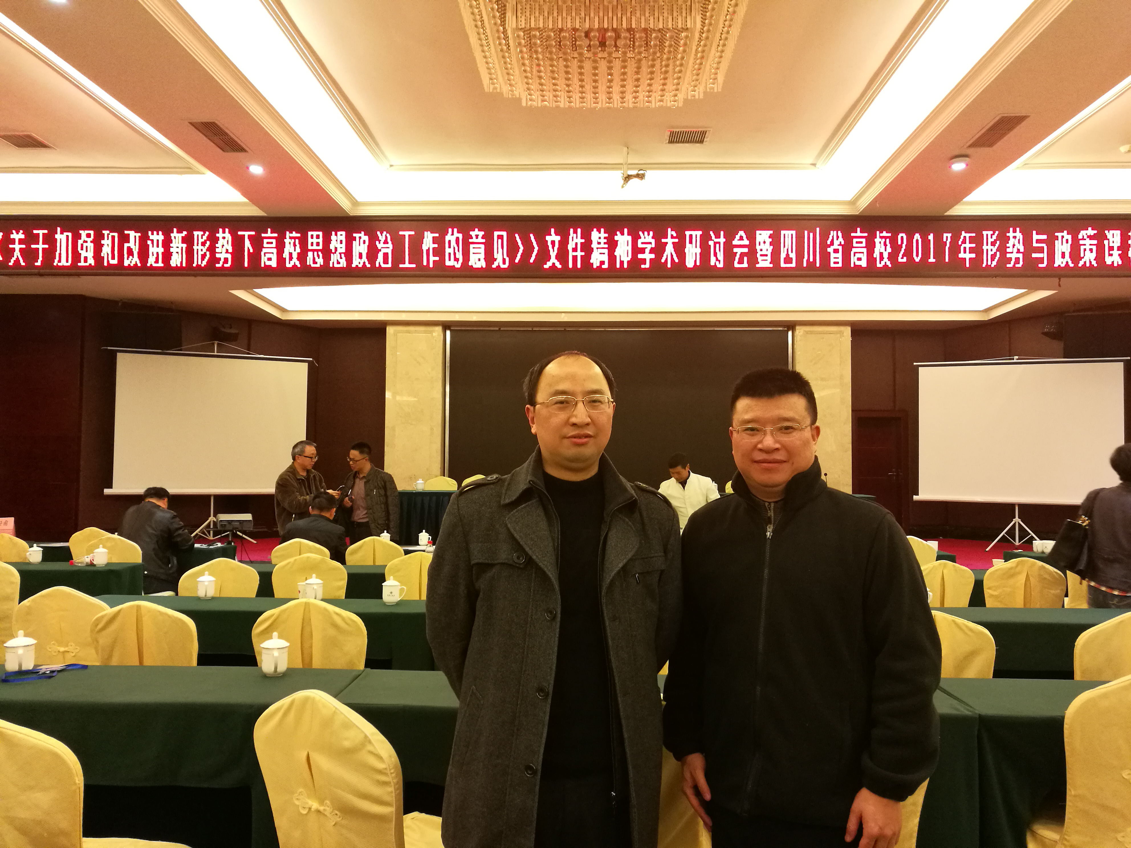 3月30日—4月1日,《关于加强和改进新形势下高校思想政治工作的意见》文件精神学术研讨会暨四川省高校2017年形势与政策课程教学研讨会在西华师范大学举行,全省各高校140余名教师参会,思政部副主任洪松林、何衡老师参加了会议。 开幕式上,西华师范大学党委副书记聂应德教授致辞,四川省高校形势与政策课程研究会新任会长陈驰介绍了研究会今年的工作情况并对将来工作做了规划。成都理工大学廖怀高老师传达了第38期全国普通高校“形势与政策”课培训的精神。何微、唐晓勇等专家围绕“十三五规划、全国人大对香港基本法释法、形势与政策课程管理体制改革、中国道路等作了精彩讲座。