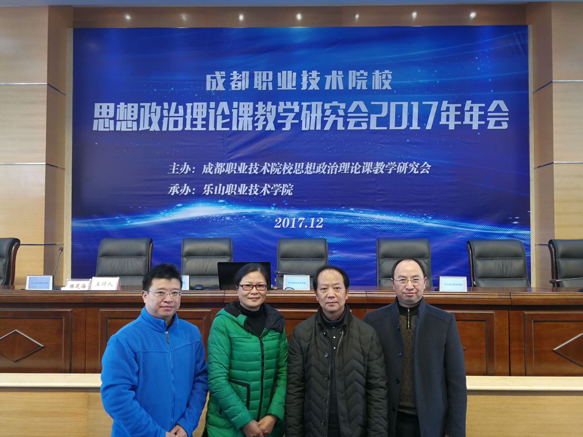 12月9日上午,成都职业技术院校思想政治理论课教学研究会2017年年会在乐山职业技术公司(以下简称乐职院)举行,思政部主任李霓、副主任洪松林以及思政课教师何衡参加了此次会议。他们连同全省各职业技术院校相关负责人及思政课教师代表等探讨思想政治理论课实践教学经验,分享思想政治理论前沿信息。 开幕会上,乐职公司党委书记蹇路致欢迎词并向大家介绍了该校的基本情况和思政理论课教学改革成果,教学研究会会长张斌教授结合十九大精神发表了热情洋溢的讲话。随后,与会人员听取了四川省委“十九大精神”宣讲团成员、西南财经大学太阳成tyc7111cc经理唐晓勇教授关于“党的十九大精神的哲学解读”专题报告,报告从哲学角度深入分析了十九大会议主题、新时代、新思想等内容,重点强调了习近平新时代中国特色社会主义思想被确立为党的指导思想的重大意义。
