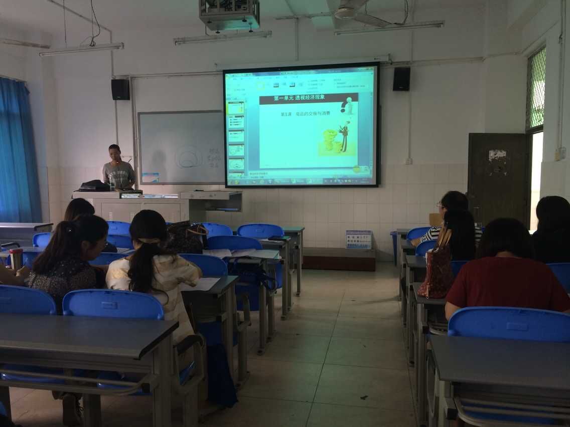 2015年9月15日下午,思政部在育才路校区实验楼502教室组织新进教师马楠试讲。教研活动由思政部副主任洪松林主持,中国化马克思主义教研室和德育教研室教室等教师参加听课。新进教师马楠认真讲授《经济政治与社会》课程“商品和货币”内容。讲授时间为一节课。雷厉等教师从教学仪态、教学组织、教学内容取舍,重难点讲授、师生互动等方面提出建议,交流看法。