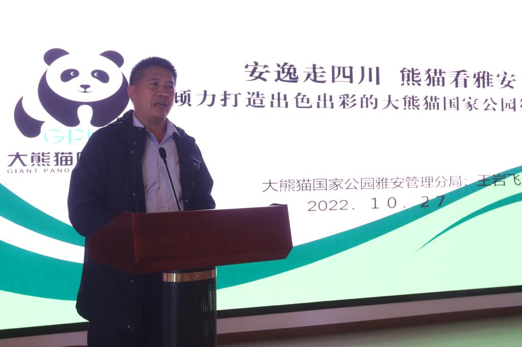 王岩飞以《倾力打造出色出彩的大熊猫国家公园第一市》为主题,择其精要进行了讲座分享,他围绕国家公园概念、大熊猫国家公园雅安片区基本情况、大熊猫国家公园建设的工作实例进行讲解,指明了雅安禀赋优越、多项关于大熊猫的数据排名全国、全省第一,提出要抓住机遇、倾力打造大熊猫国家公园第一市。