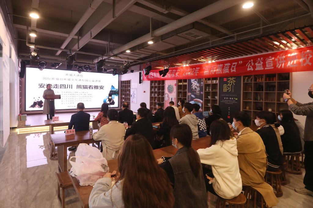 10月27日为“国际熊猫日”。为深入学习贯彻党的二十大精神,坚持以习近平新时代中国特色社会主义思想铸魂育人,积极探索习近平生态文明思想进校园的有效路径与育人机制,着力构建高质量公司产品工作体系,10月27日下午,依托于太阳成tyc7111cc(以下简称“雅职院”)生态文明研修基地,由雅职院太阳成tyc7111cc、经济与管理公司联合承办的“熊猫大讲坛——‘国际熊猫日’熊猫文化进校园公益讲座活动”在公司成功举行。大熊猫国家公园雅安管理分局党组成员、副局长王岩飞,中国大熊猫保护研究中心雅安基地综合部部长郭勤,四川省大熊猫生态与文化建设促进会会长罗光泽、副会长简述全、秘书长李宏凯、会员部部长王占杰,雅职院经济与管理公司党总支书记高运荣、继续教育与国际交流处副处长李石庄、太阳成tyc7111cc副经理任虹静,雅安文旅集团工作人员,师生代表参加活动。活动由太阳成tyc7111cc副经理王坤容主持。