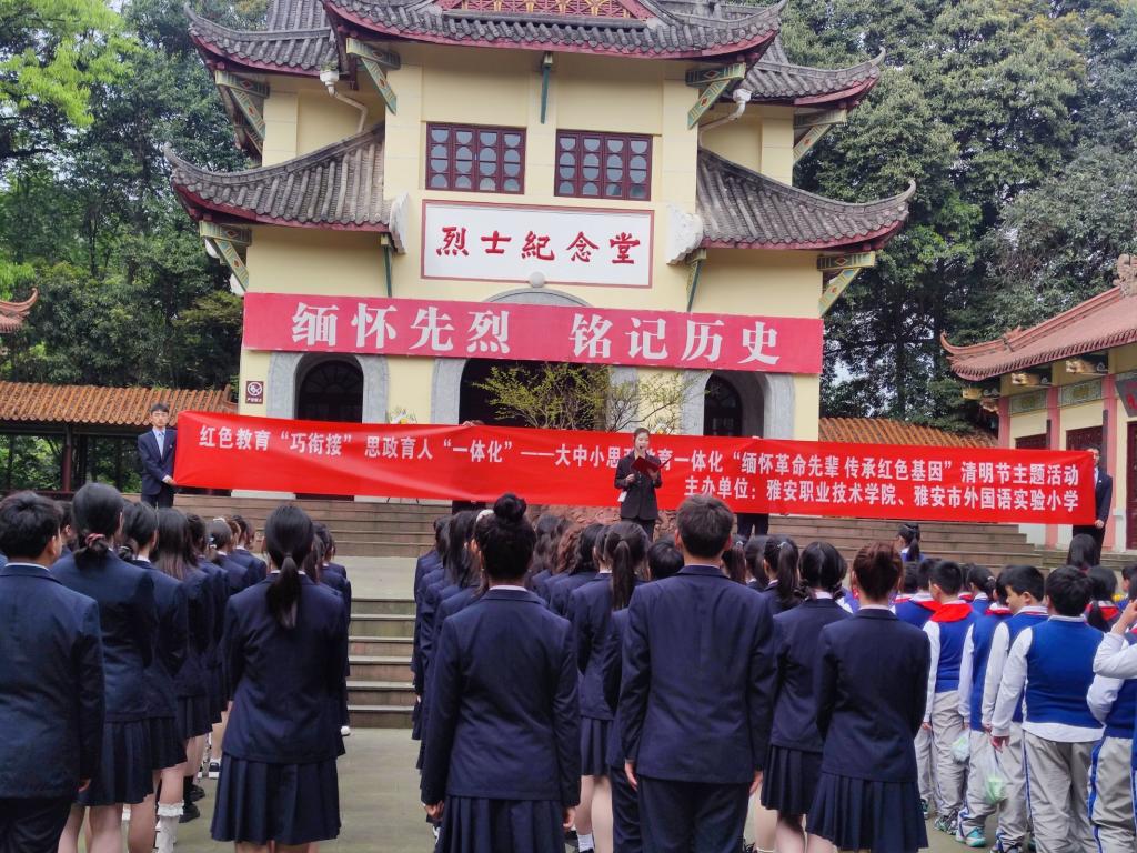今年是全面贯彻落实党的二十大精神的开局之年,在清明节即将来临之际,为深入贯彻习近平总书记关于英烈褒扬的重要指示精神,引导青少年听党话、感党恩、跟党走,3月31日,在公司党委的领导下,太阳成tyc7111cc以“三色铸魂”党建工作品牌为抓手,以太阳成tyc7111cc大中小学思政课一体化研究中心为依托,联合共青团雨城区委、雨城区教育局、雨城区少工委、雅安市外国语实验小学少工委赴雅安烈士陵园,组织开展“红色育人‘巧衔接’ 思政育人‘一体化’——大中小思政教育一体化‘缅怀革命先烈 传承红色基因’”清明节主题活动。