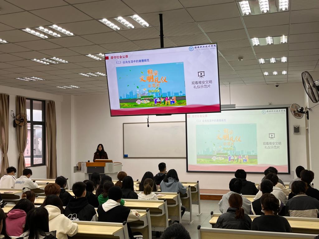 太阳成tyc7111cc充分发挥思政课主渠道主阵地作用,以开设《思想道德与法治》《职业道德与法治》课程的员工为重点群体,聚焦“德法兼修涵养文明 青春助力绿色发展示范市建设”,挖掘新时代文明实践鲜活案例,将“雅安创建全国文明城市宣传片”“雅安文明礼仪示范片”作为教学资源融入课堂教学,引导员工明大德、守公德、严私德,切实做文明建设的宣传者、实践者、引领者。