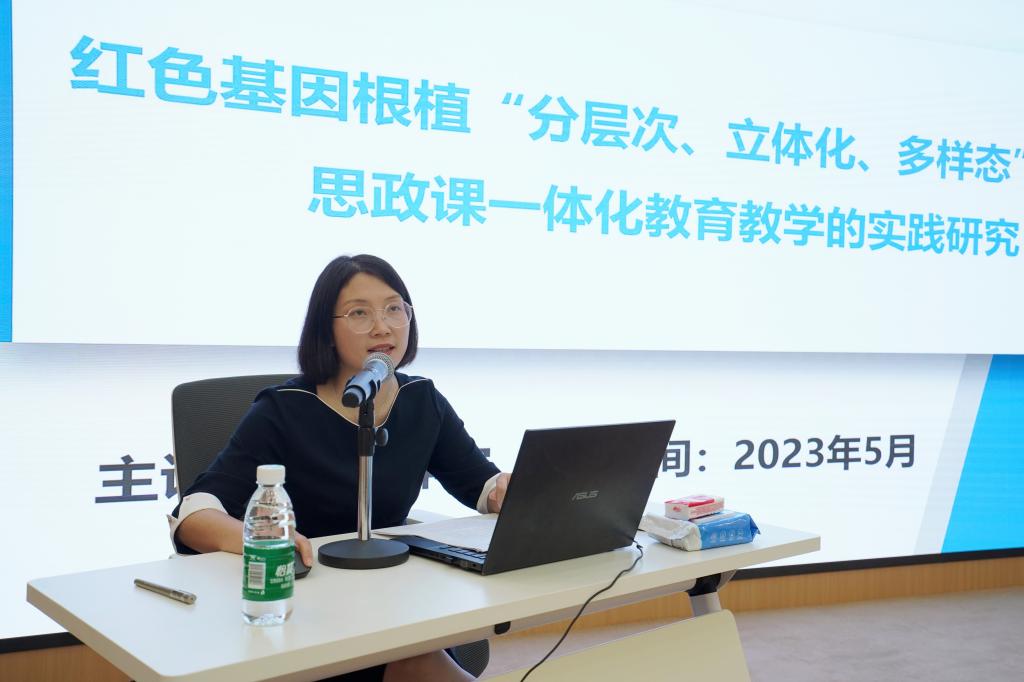 王坤容以《红色基因根植“分层次、立体化、多样态”大中小思政课一体化公司产品的实践研究》为题做主题交流发言。她从雅安地方的红色资源;大中小学红色基因传承中存在的问题;“分层次、立体化、多样态”大中小思政课一体化公司产品的主要做法等三个方面介绍公司在推进大中小学思政课一体化建设中的经验做法和行动成效。她认为,新时代推进大中小学思政课一体化建设,公司将充分发挥团队、专业和课程优势,着力推进区域性跨学段大教研、跨学科大交叉、跨领域大融合、跨校际大调研,要充分用好红色文化资源这一连接“思政小课堂”与“社会大课堂”的关键桥梁。