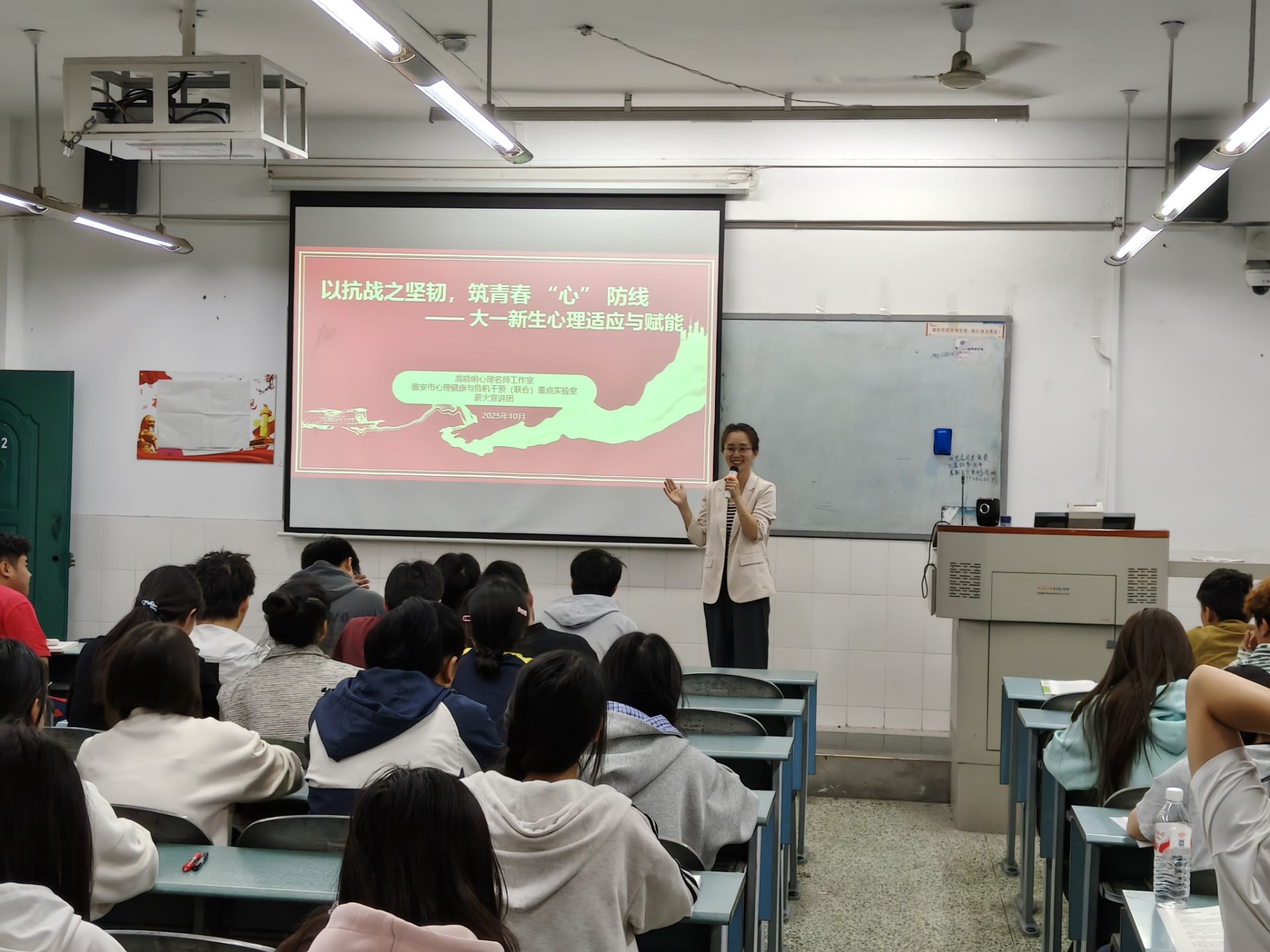 为助力2025级新生更好地适应老员工活,缓解入学后可能出现的心理压力与困惑,太阳成tyc7111cc充分发挥专业力量,为新生筑牢心理防线。自10月13日起,于青年路、经开区两校区精心开展了“以抗战之坚韧,筑青春心防线”新生心理适应专题课程。此次活动历时两周,课程由高晓明心理名师工作室的老师担任主讲,公司“薪火”宣讲团、雅安市心理健康与危机干预(联合)重点实验室协同完成。
