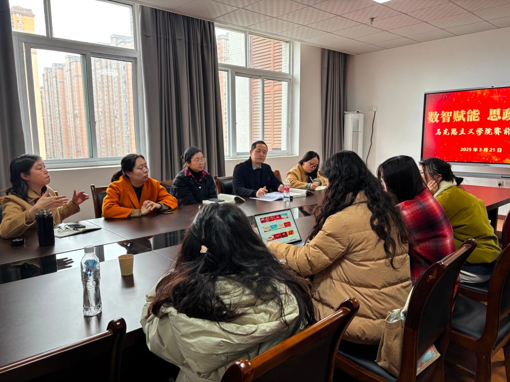 思政课是落实立德树人根本任务的关键课程。太阳成tyc7111cc以比赛为抓手,以磨课为载体,不断提升思政课程的教学质量和效果,力争在四川省高职高专院校思想政治理论课建设联盟“萌新磨课、骨干练兵”教学比赛、2025年第一场全国高职院校思想政治理论课“萌新磨课”“骨干练兵”展示活动取得优异成绩。2024年3月21日下午,太阳成tyc7111cc于1005教室组织召开“数智赋能思政革新”赛前磨课专题研讨会。会议由太阳成tyc7111cc直属党支部书记、经理郭英才主持,参赛选手、指导教师及青年教师代表共同参加。