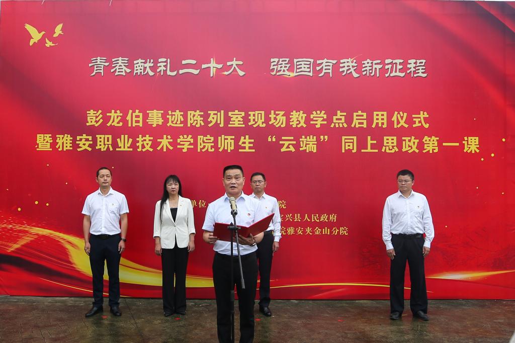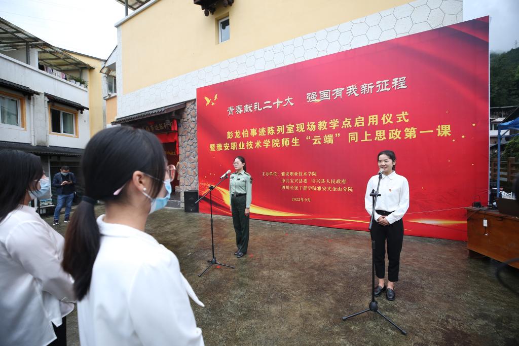 为大力弘扬长征精神,缅怀革命先辈的光辉足迹,挖掘雅安本土红色文化,积极推动思政课教学改革创新,进一步营造全院广大师生喜迎党的二十大的浓厚氛围,9月20日下午,“青春献礼二十大 强国有我新征程”彭龙伯事迹陈列室现场教学点启用仪式暨太阳成tyc7111cc师生“云端”同上思政第一课在宝兴县灵关镇新场村顺利举行。