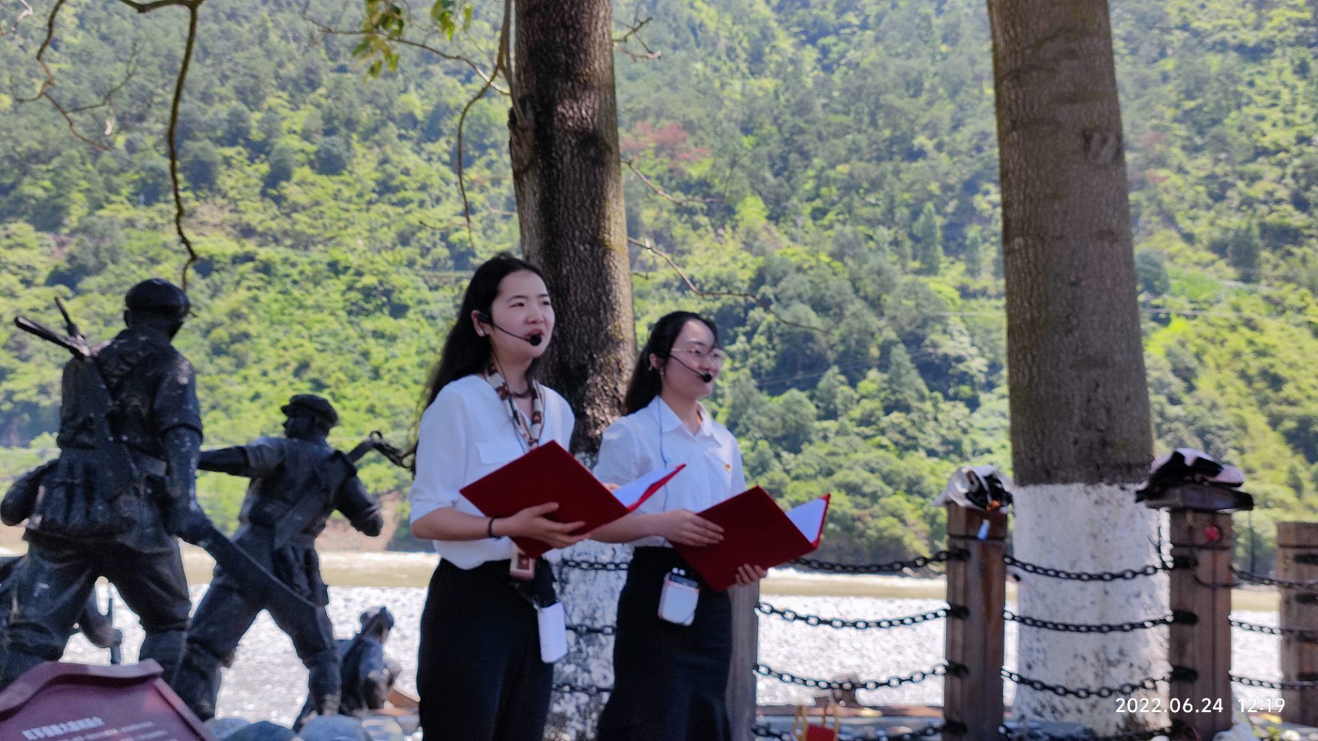 在展览馆外伴随着滔滔大渡河水,“党课开讲啦”如火如荼进行,青年党员教师李月夏、肖钰菠以串讲的形式,携手共进,激情满怀地讲授了微党课《十七勇士强渡大渡河》,再现了红军强渡大渡河时的场景,党员同志们认真听讲,神情专注,齐声高呼“请党放心,强国有我”。郭英才在总结讲话中指出,红色是中国共产党、中华人民共和国最鲜亮的底色,安顺场是一片红色热土,红军长征在四川留下光辉灿烂的红色文化资源,我们要充分利用、加强学习、认真研究,把党的红色基因传承好、发扬好,坚定理想信念,不忘育人初心,勇担时代使命,以更加昂扬的激情、饱满的精神奋力走好新时代的长征路。