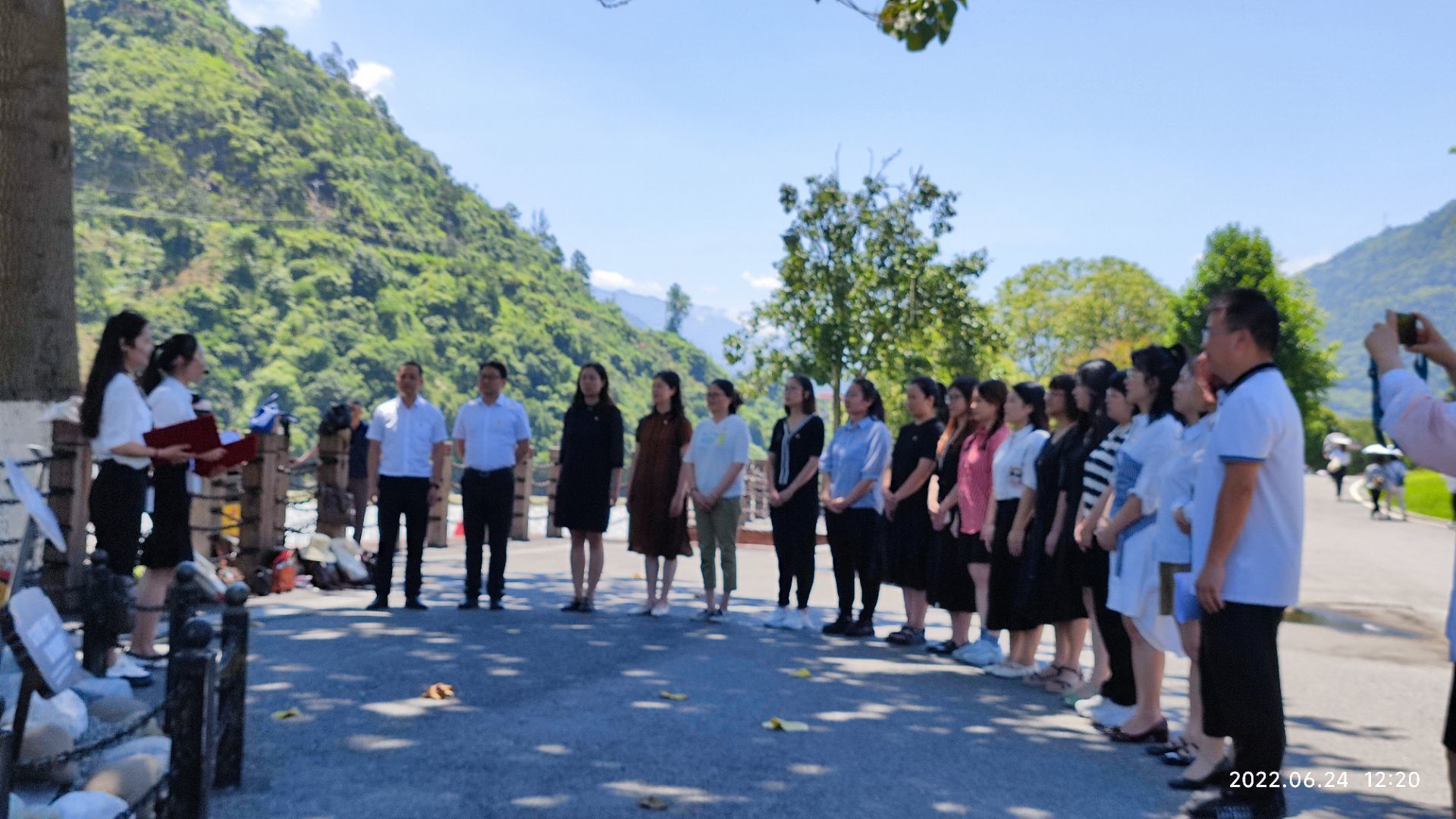 为庆祝中国共产党成立101周年,营造喜迎党的二十大胜利召开的浓厚氛围,砥砺革命精神,传承红色基因,6月24日,太阳成tyc7111cc直属党支部赴石棉县安顺场开展“初心如磐担使命 强国有我新征程”主题党日活动。公司党委委员、宣传部部长、太阳成tyc7111cc直属党支部书记、经理郭英才率太阳成tyc7111cc全体党员教师参加了本次活动。