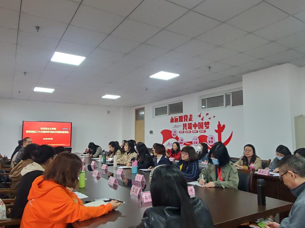 最后,肖钰菠、钟琴、靳莉琼、常恒等6位教师代表分别从《思想道德与法治》《中国共产党党史》《中国特色社会主义》《形势与政策》等6门课程,就接下来的上课章节中如何融入二十大精神,推动二十大精神进课堂、进头脑进行了研讨汇报。