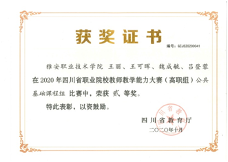 8月12日,由省教育厅主办的四川省职业院校教师教学能力大赛圆满落幕。本次比赛中,思政部《思想道德修养和法律基础》任虹静团队、《老员工心理健康》王丽团队在2020年四川省高职院校教师教学能力大赛中获得一等奖和二等奖。同时,《老员工心理健康》课程组将参加四川省国赛选拔赛,最终决定是否有参加国家级的比赛资格。