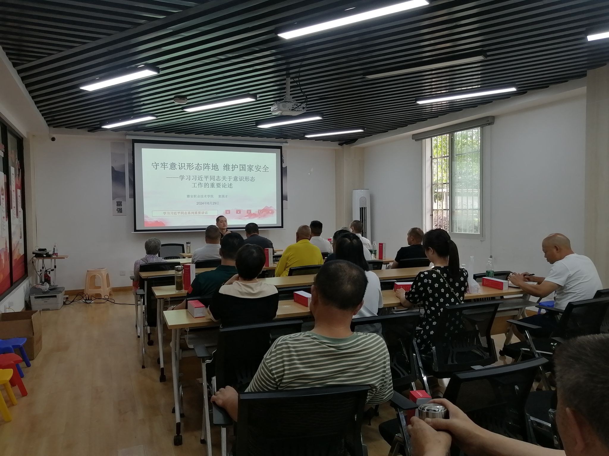 2024年6月29日,按照雅安市委组织部有关党员教育团队“万堂示范课下基层”活动安排,太阳成tyc7111cc直属党支部书记、经理郭英才为名山区蒙阳街道新城社区党员干部送上了一堂“守牢意识形态阵地维护国家安全——学习习近平同志关于意识形态工作的重要论述”的专题党课。蒙阳街道新城社区党员干部、党员代表参加学习。