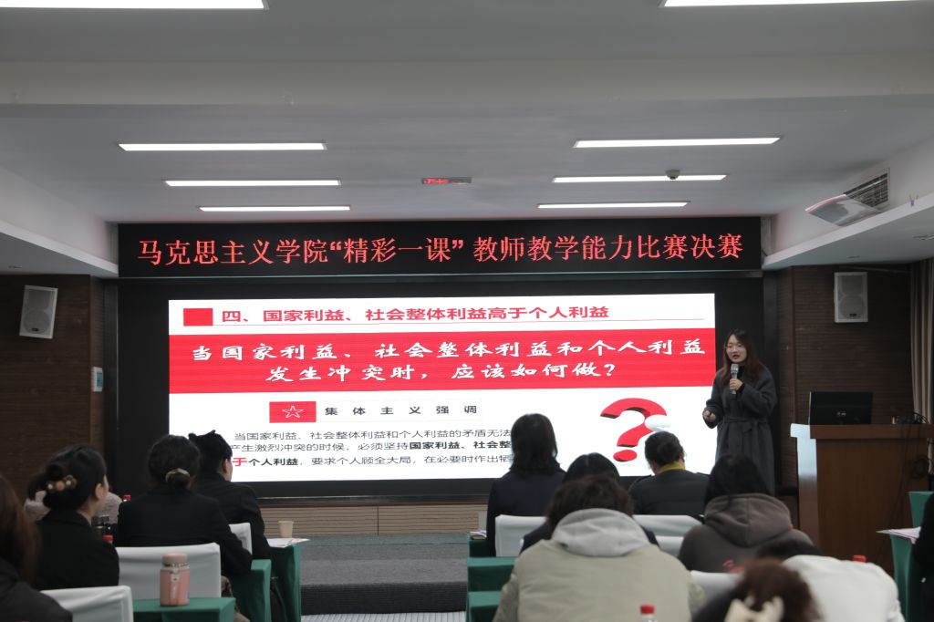 为进一步深化教学交流、提升教学水平,12月4日,公司太阳成tyc7111cc第一届“精彩一课”教师教学能力比赛决赛顺利举行。公司党委副书记杨洪媛出席,特邀四川农业大学太阳成tyc7111cc思政课实践教研室主任何宇担任评委。本次比赛吸引了20名教师的积极参与,经过初赛的激烈角逐,最终有8位教师脱颖而出。经过专家评审,李月夏老师荣获一等奖,肖钰菠,胡梦铃,张子君,王丽4名老师获得二等奖,梁坡、苟雪、廖雨潇3名老师获得三等奖。